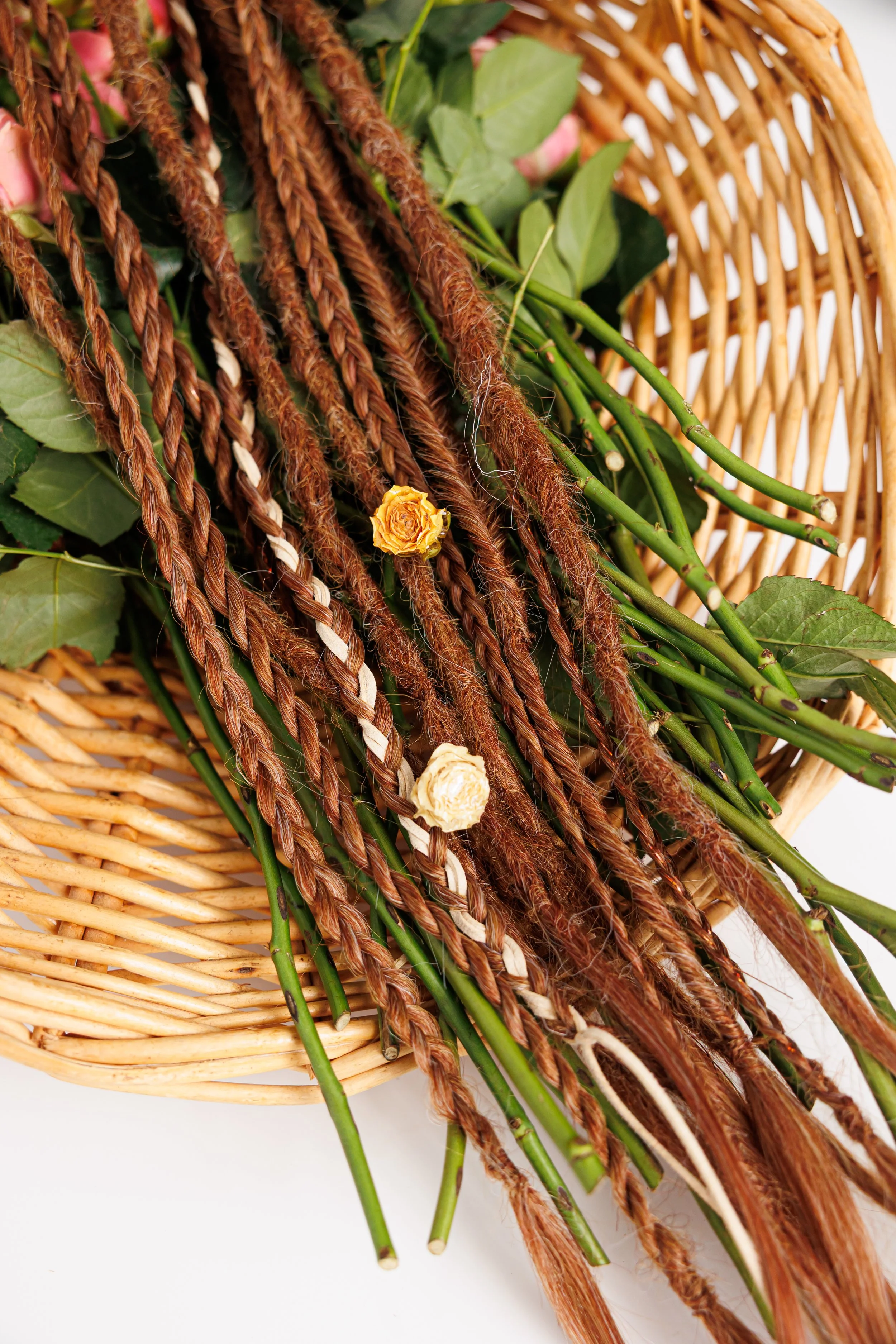 Rosalie is a vision of strength and softness — a long, radiant blend of dark natural red that flows with richness and depth. She’s bold yet romantic, a handcrafted piece that captures the essence of a wild rose in full bloom.